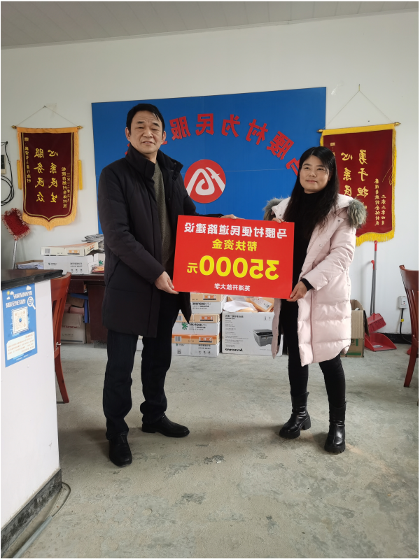 12月17日下午,芜湖开放大学党委书记、校长黄丽娟、副校长鲁华一行赴“双联系”村——无为市襄安镇马腰村,与村党委班子共同开展“我为群众办实事”调研走访活动。校领导详细了解了该村近期重点工作开展情况,围绕乡村建设中存在的薄弱环节提出改进意见与建议,副校长鲁华代表学校向马腰村捐赠道路建设扶助资金35000元,助力村级基础设施改善。