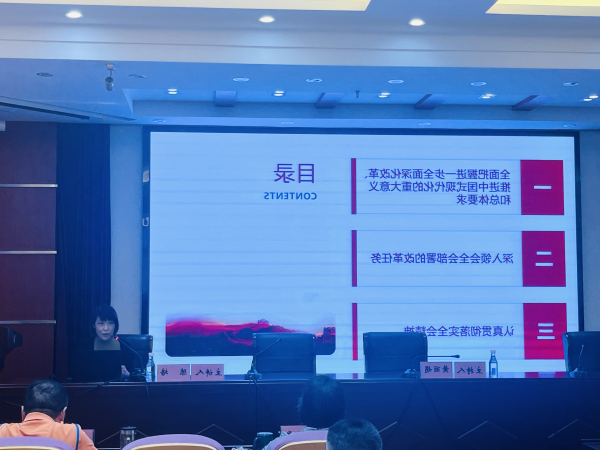 邀请市委党校经济与管理学教研部副主任、教授陈培围绕进一步全面深化改革、推进中国式现代化—深入学习领会党的二十届三中全会精神,结合改革发展实践,从全面把握进一步全面深化改革推进中国式现代化的重大意义和总体要求、深入领会全会部署的改革任务、认真贯彻落实三中全会精神三个方面给大家讲授了一堂全面系统、深入浅出的学习辅导课,内容丰富详实,既有理论高度,又有实践深度和历史广度,是对融会贯通学习全会精神的生动示范。